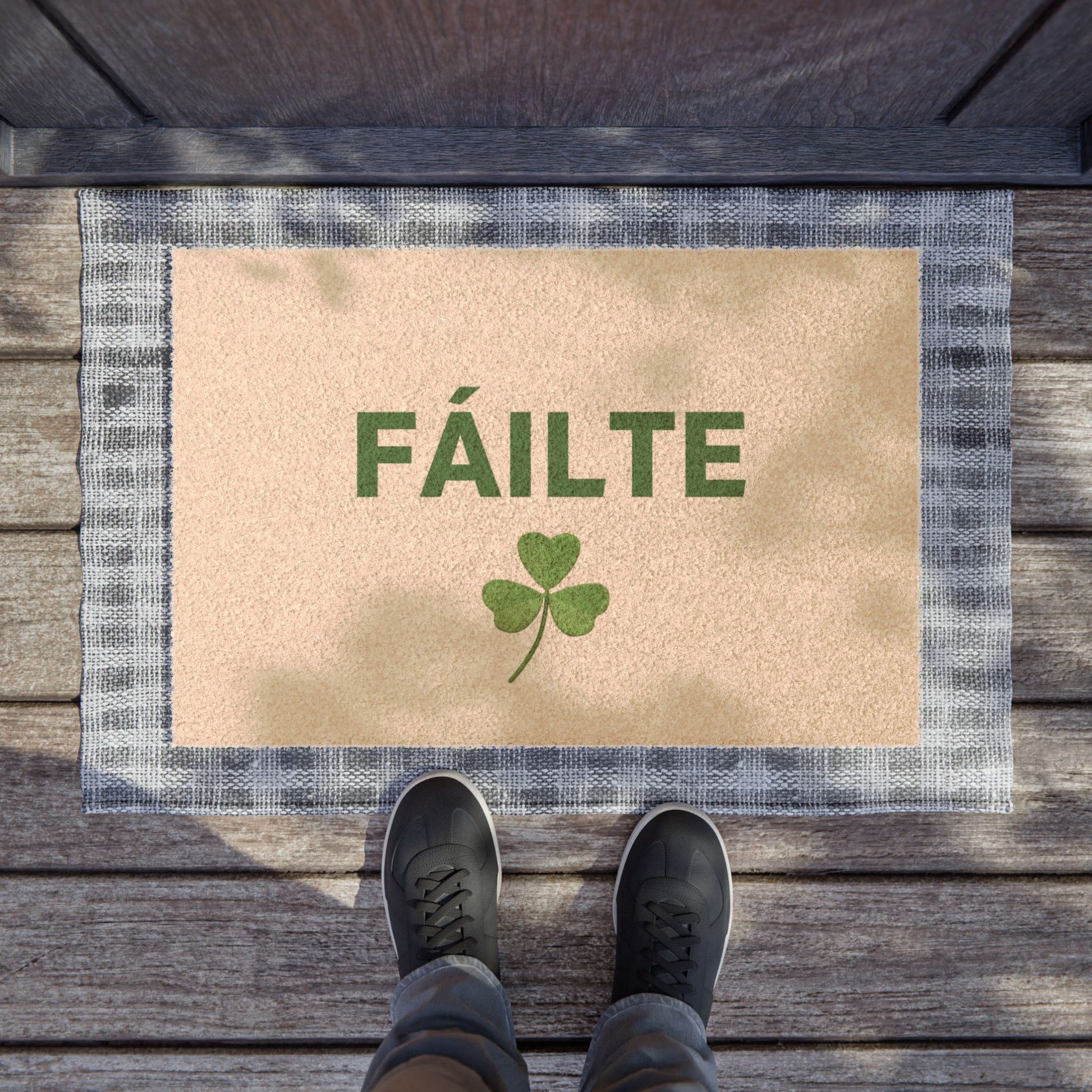 Fáilte Doormat — Irish Welcome Coir Mat with Shamrock