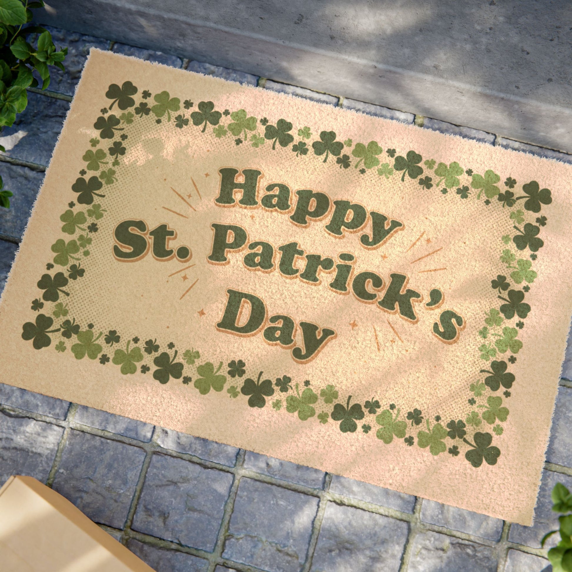 Happy St. Patrick's Day Doormat — Shamrock Border Holiday Welcome Mat